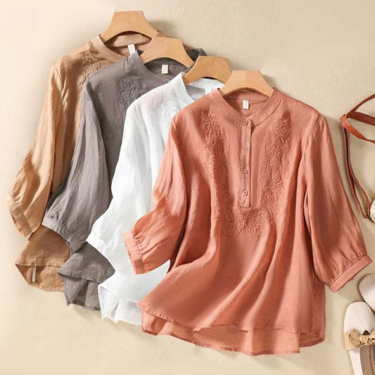 Laurienne™ | Blusa abotonada con cuello mandarín