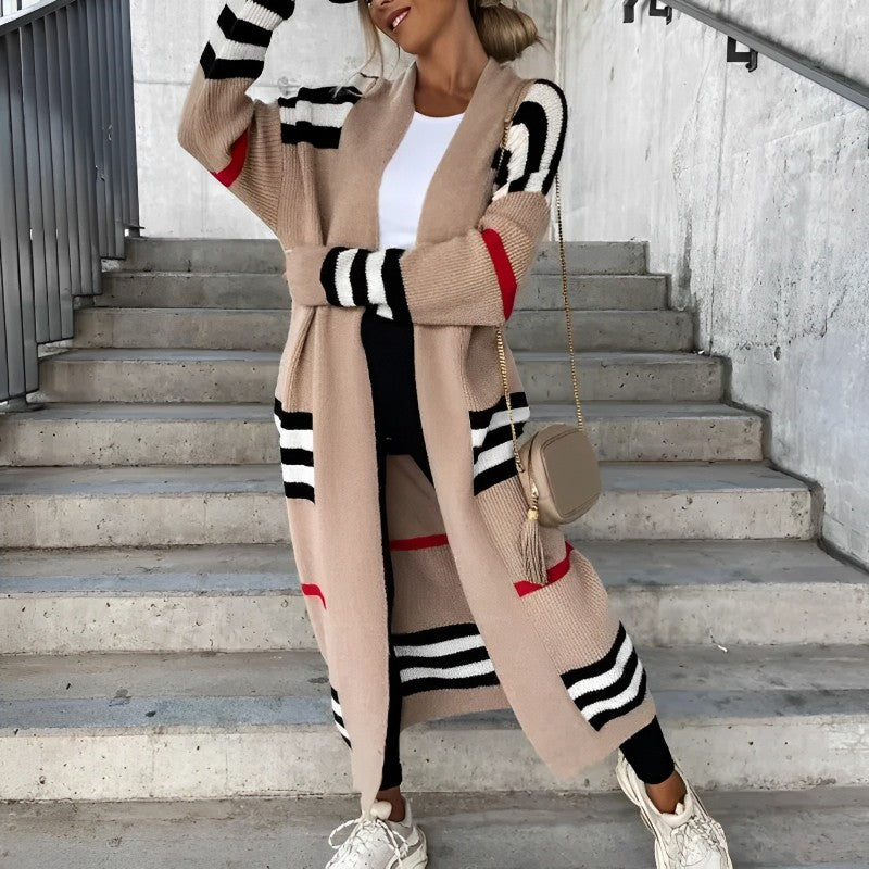 Cárdigan Kelly™ con Frente Abierto de Rayas en Contraste