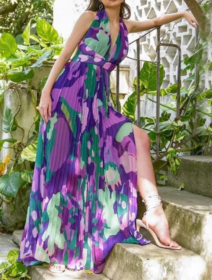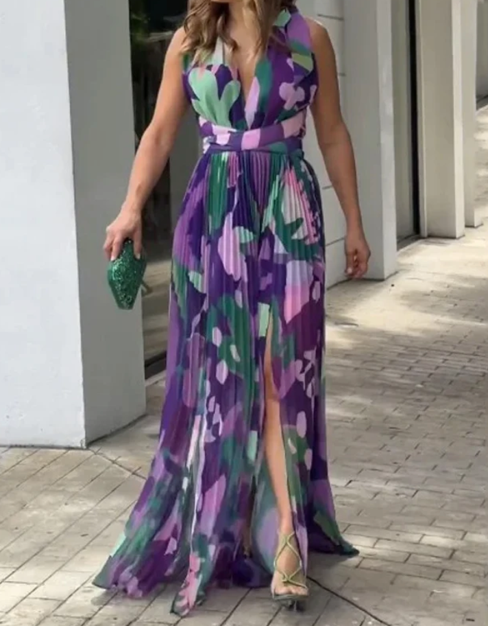 Entra flotando en la habitación con la elegancia atemporal del vestido largo plisado Marie™, diseñado para la mujer exigente que valora el estilo clásico con un toque moderno. Este exquisito vestido cuenta con pliegues profundos que crean una silueta fluida, perfecta para hacer una declaración sofisticada.