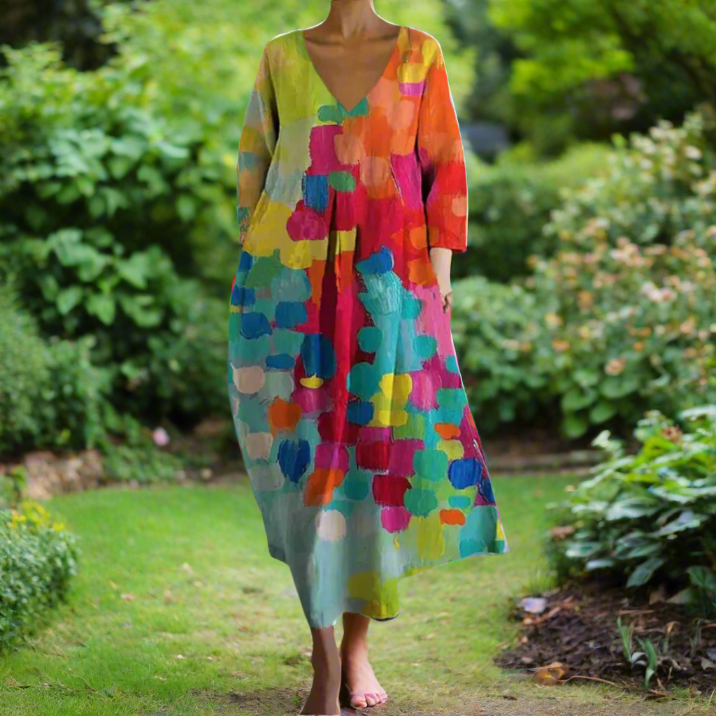 Nerina™ | Vestido premium con cuello en V en tonos llamativos